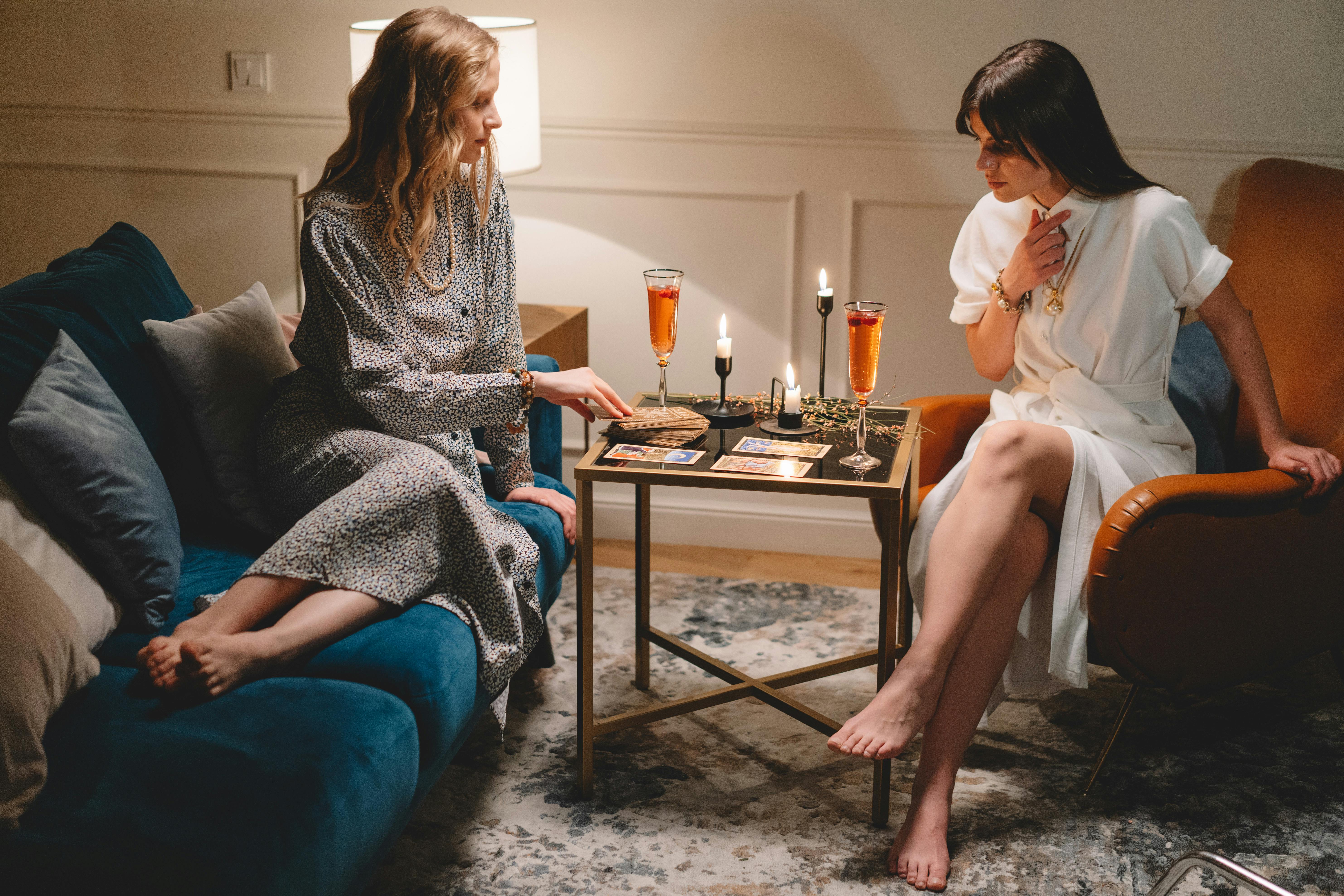 Föreställ dig ett stilla rum med levande ljus, kristaller som glimmar svagt och tarotkort vars bilder väcks till liv på bordet framför dig. Luften är fylld av lugn, närvaro och en aning mystik – precis lagom för att du ska våga öppna hjärtat lite mer.