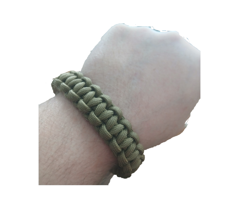 Detta handgjorda paracordarmband är knutet i mönstret Cobra (Solomon Bar), vilket ger ett stabilt och följsamt armband med klassiskt utseende. Färgen Coyote brun ger ett diskret och robust uttryck som passar både till vardagsbruk och friluftsliv.