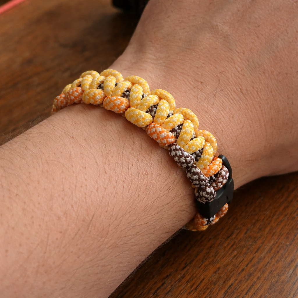 Ett handgjort paracord-armband i Cobra Knot-design, en klassisk och slitstark flätning som ger både styrka och ett kraftfullt utseende.