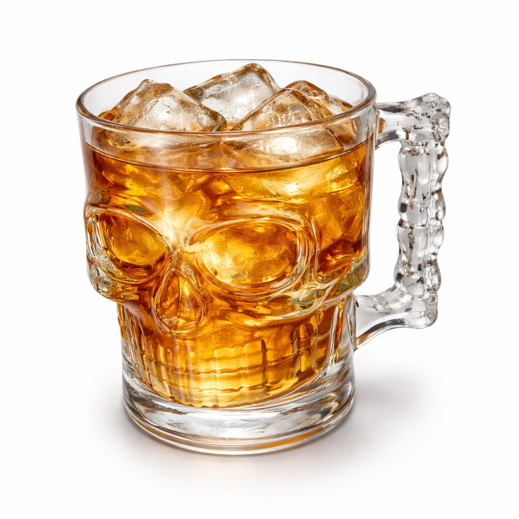 Stilrent och unikt glas i form av en dödskalle – perfekt för dig som vill sticka ut. Glaset har ett robust handtag och passar lika bra för kalla drycker som för att skapa en häftig servering.