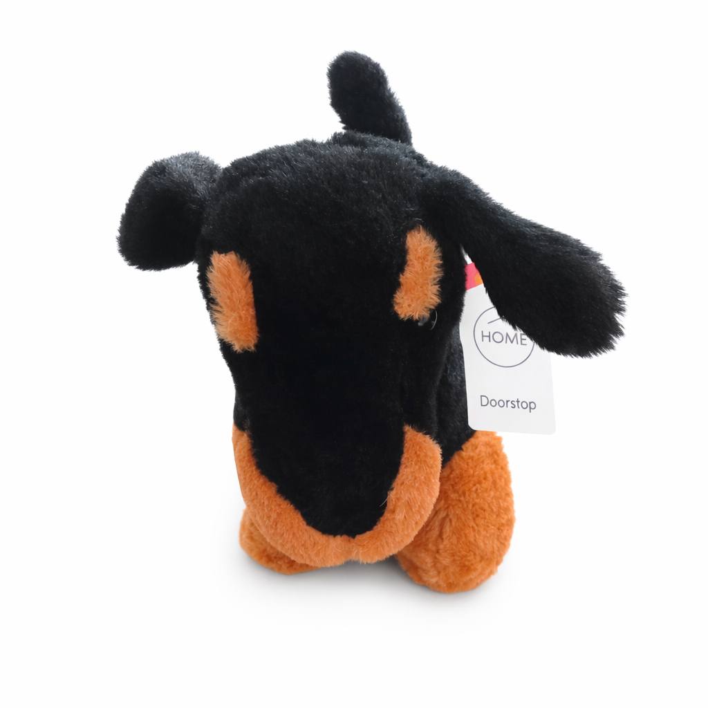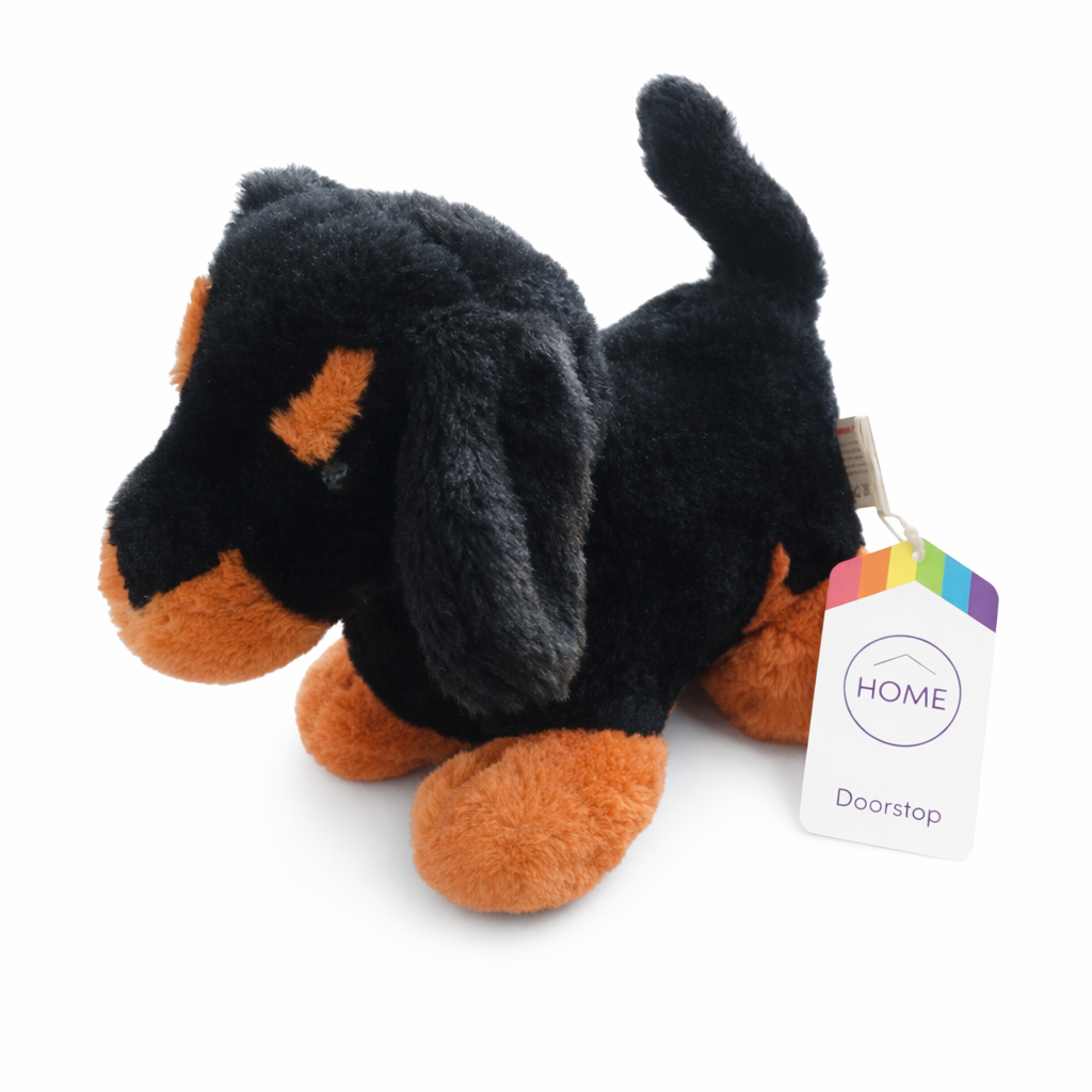 Ett dekorativt och funktionellt dörrstopp utformat som en mjuk hund i svart och brun design. Den mjuka plysch ytan ger ett varmt och hemtrevligt intryck samtidigt som den tyngda fyllningen håller dörrar stadigt på plats utan att repa golvet. Perfekt för hem, barn rum eller som en charmig inredningsdetalj.