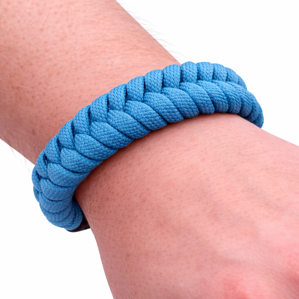 Ett handgjort paracord-armband i Fishtail-design, en stilren och smidig flätning som ger ett rent och balanserat utseende. Den plattare konstruktionen gör armbandet bekvämt att bära under hela dagen, samtidigt som det behåller styrkan och hållbarheten som paracord är känt för.