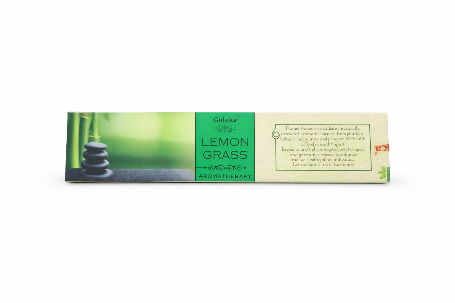 Goloka Lemongrass Aromatherapy är en rökelse med en frisk och upplyftande doft av citrongräs. Den naturliga aromen skapar en lugn och harmonisk atmosfär och passar perfekt för meditation, yoga eller för att ge hemmet en fräsch och behaglig doft.