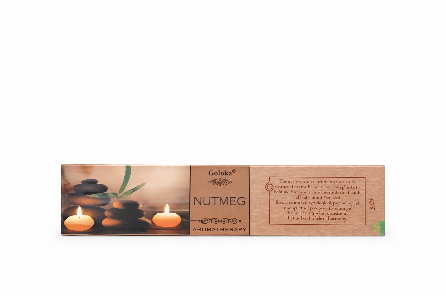 Skapa en varm och harmonisk atmosfär med Goloka Nutmeg aromaterapirökelse. Den kryddiga, mjukt söta doften av muskot ger en känsla av trygghet, lugn och välbefinnande — perfekt för meditation, avslappning, yoga eller när du vill skapa en ombonad stämning i hemmet.