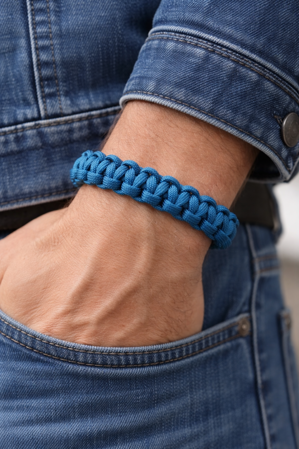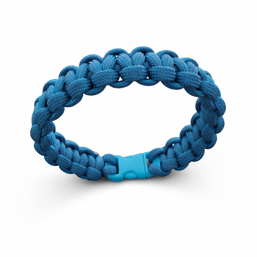 Stilrent paracord-armband i djup blå färg med robust flätad design och ett slitstarkt plast spänne. Ett enkelt och snyggt tillbehör som passar både till vardag och fritid.