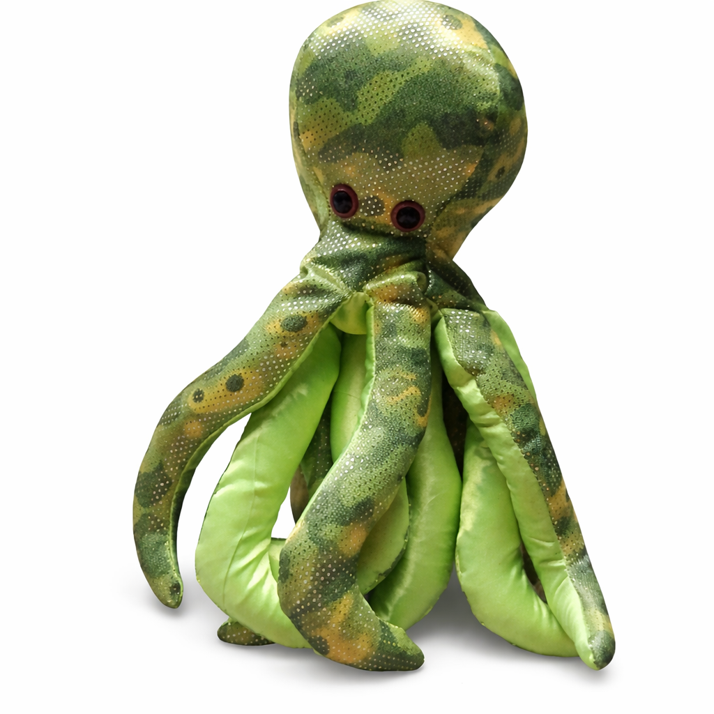 Denna sandfyllda bläckfisk har en tydlig tyngd som ger en taktil och lugnande känsla i handen. Huvudet är mjukt medan tentaklerna är fastare och fyllda med sand, vilket gör figuren behaglig att hålla i, klämma på