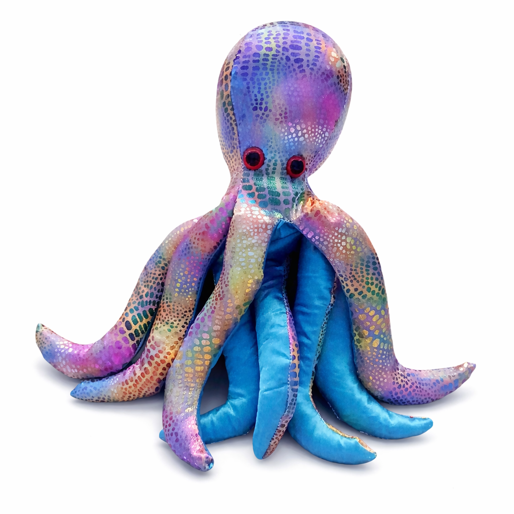 Denna sandfyllda bläckfisk har en tydlig tyngd som ger en taktil och lugnande känsla i handen. Huvudet är mjukt medan tentaklerna är fastare och fyllda med sand, vilket gör figuren behaglig att hålla i, klämma på