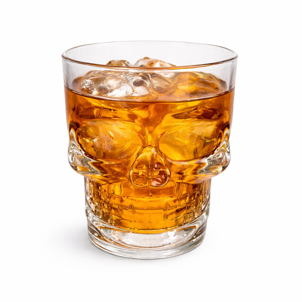 Ett stilfullt och unikt glas i form av en skalle som garanterat drar blickarna till sig. Den detaljerade designen ger glaset ett kraftfullt och dekorativt utseende som passar perfekt för både fest, barhörna eller som en cool inredningsdetalj.
