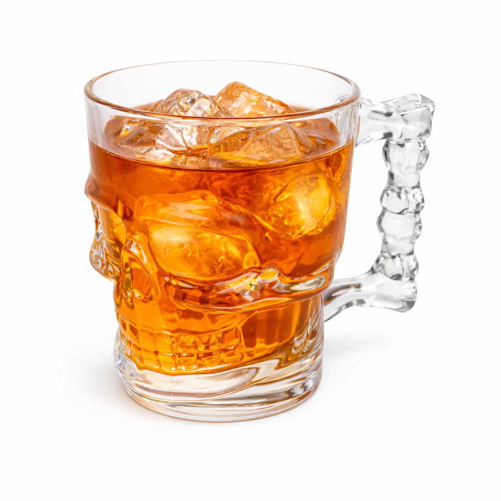 Glaset är tillverkat i transparent glas och skallen framträder tydligt när drycken fylls i, vilket skapar en häftig effekt. Passar utmärkt till exempelvis läsk, juice, drinkar eller andra kalla drycker.