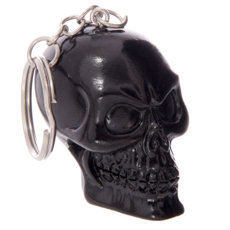 En stilren och kraftfull nyckelring med en svart dödskalle som ger en rå och mörk edge till din vardag. Den minimalistiska designen kombinerar gothic estetik med en modern känsla, vilket gör den till en perfekt accessoar för dig som vill sticka ut.