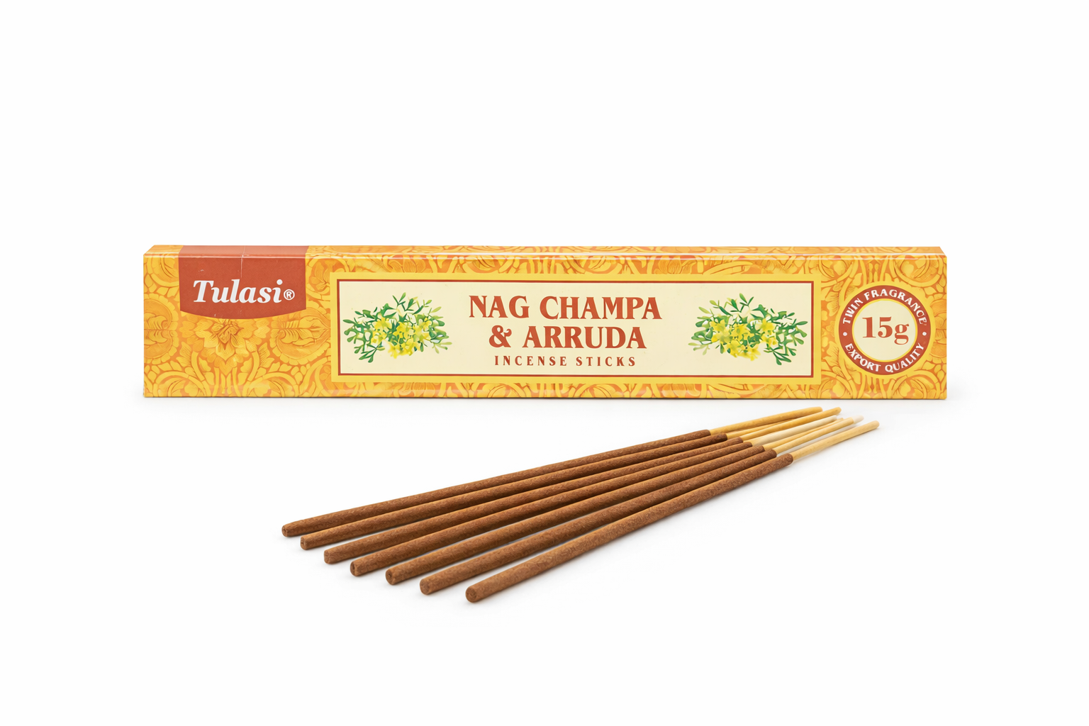 Rökelse pinnar med en harmonisk blandning av klassisk Nag Champa och fräsch Arruda. Skapar en lugn och renande atmosfär – perfekt för meditation och avkoppling.