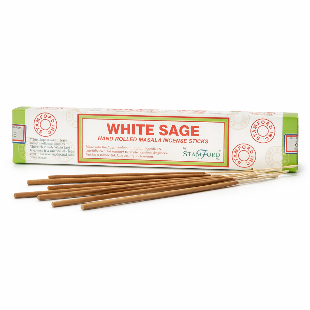 Handrullade rökelse pinnar med doft av vit salvia som skapar en ren, lugn och harmonisk atmosfär. Passar perfekt för meditation, avslappning och energi renande stunder i hemmet.
